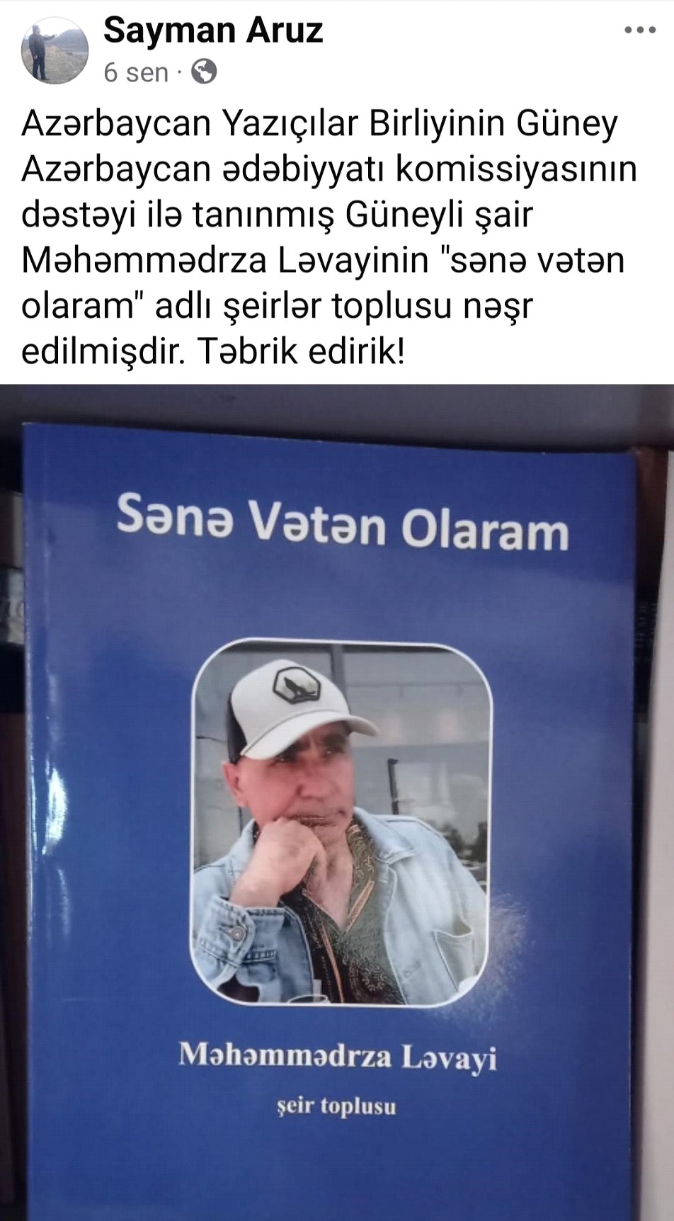 Siz deyirsiniz kitab çap olub, amma sonra deyirsiniz ki, istəyirlərsə, özləri çap etsinlər. Burda bir məsələ var, siz kitabı çap etməyibsiniz və onun çap və nəşr xəbərini paylaşıbsınız. Bu da xəbərin fotosu: