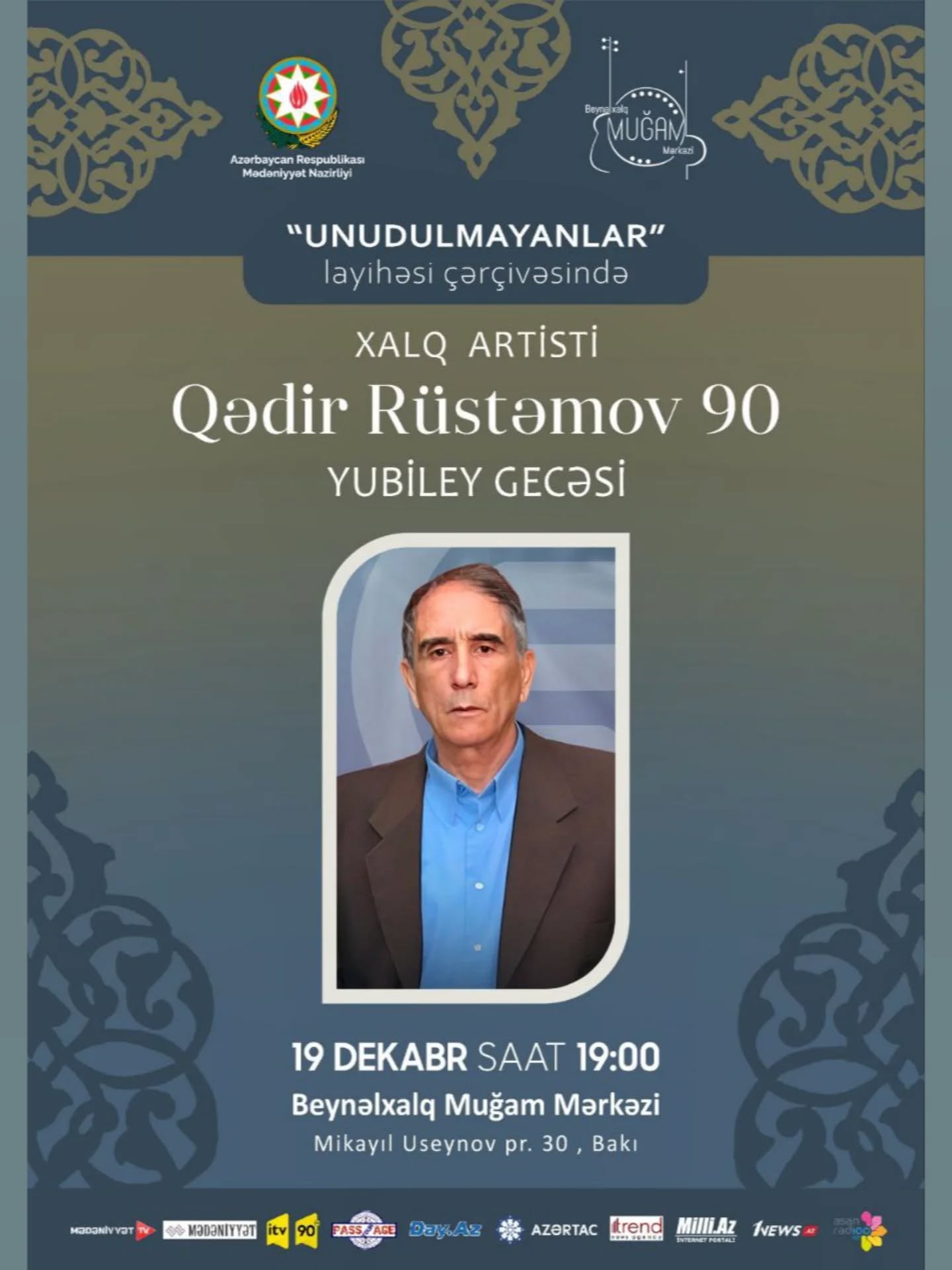 "Unudulmayanlar" layihəsi çərçivəsində Xalq artisti Qədir Rüstəmovun 90 illiyinə həsr olunmuş konsert keçiriləcək.