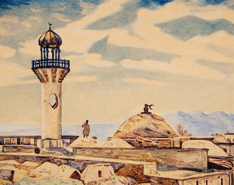 Onun əsərləri sırasında özünəməxsusluğu, təsirliliyi və tarixi əhəmiyyəti ilə mühüm əhəmiyyət kəsb edən rəsm əsərlərindən biri də "Minarəsi dağılmış məscid" əsəridir. Bu rəsm əsəri rəssamın 1920-ci ildə çəkdiyi rəsm əsərlərindəndir.