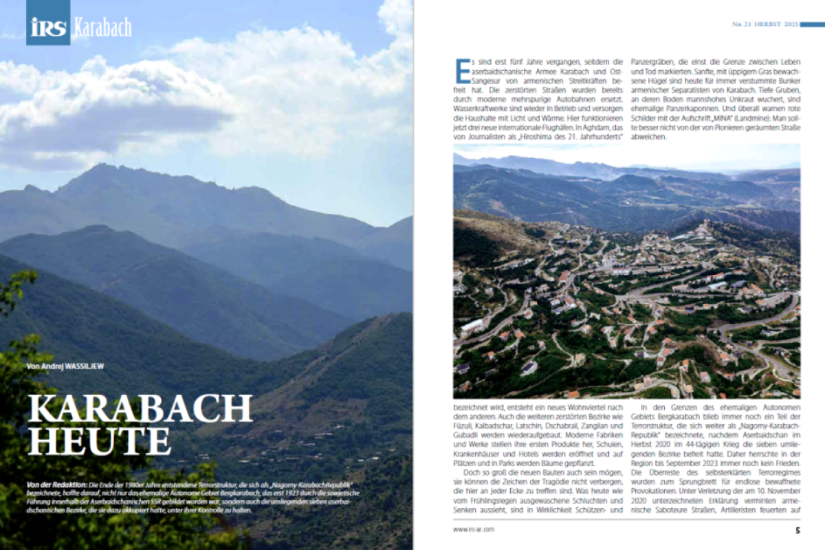 Jurnalın daimi müəlliflərindən olan Andrey Vasilyevin məqaləsində 44 günlük müharibədə Azərbaycanın qazandığı parlaq qələbə, Qarabağın işğaldan azad olunması yolunda Prezident İlham Əliyevin rəhbərliyi altında görülən mühüm bir hadisə kimi qiymətləndirilir. Sonra da publisist qeyd edir ki, bununla belə Yuxarı Qarabağda silahlı separatçı dəstələrin hələ də qalması bütün bölgə üçün təhlükə mənbəyi idi. Məhz 2023-cü ilin sentyabrında keçirilmiş bir günlük antiterror əməliyyatı separatçı rejimin mövcudluğuna son qoydu. Azad olunmuş Qarabağda aparılan bərpa və quruculuq işləri də məqalənin mühüm məqamlarındandır.