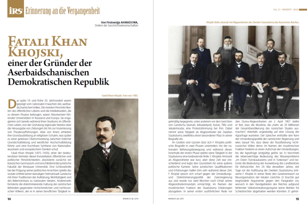 Kulis.az xəbər verir ki, “İRS” jurnalının baş redaktoru Musa Mərcanlı jurnalın alman dilindəki yeni nömrəsinə yazdığı “Ön söz”də ilk növbədə Azərbaycanın getdikcə artan nüfuzundan bəhs olunur.