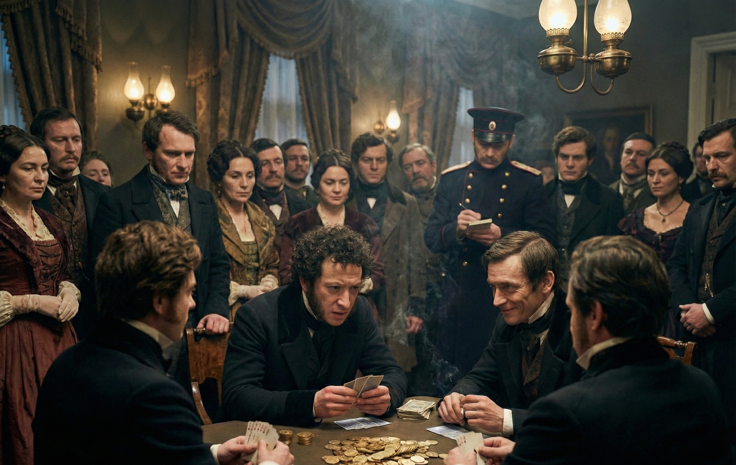 Puşkinin həyatında qumarın, xüsusilə də kart oyunlarının yeri əvəzsiz idi. O, sadəcə əyləncə üçün oynamırdı, o, sanki taleyi ilə qumara qoyurdu. Polis arxivlərində şairin "məşhur moskvalı qumarbaz" kimi qeydiyyata alındığına dair sənədlər mövcuddur. Hətta bir dəfə "Yevgeni Onegin" poemasının hələ çap olunmamış, əlyazma halında olan bütöv bir fəslini kart masasında uduzmuşdu. Xoşbəxtlikdən, şair həmin axşam bəxtinin gətirməsi sayəsində əlyazmanı geri qaytara bilmişdi, əks halda dünya ədəbiyyatı bu şah əsərin bir hissəsindən məhrum ola bilərdi.