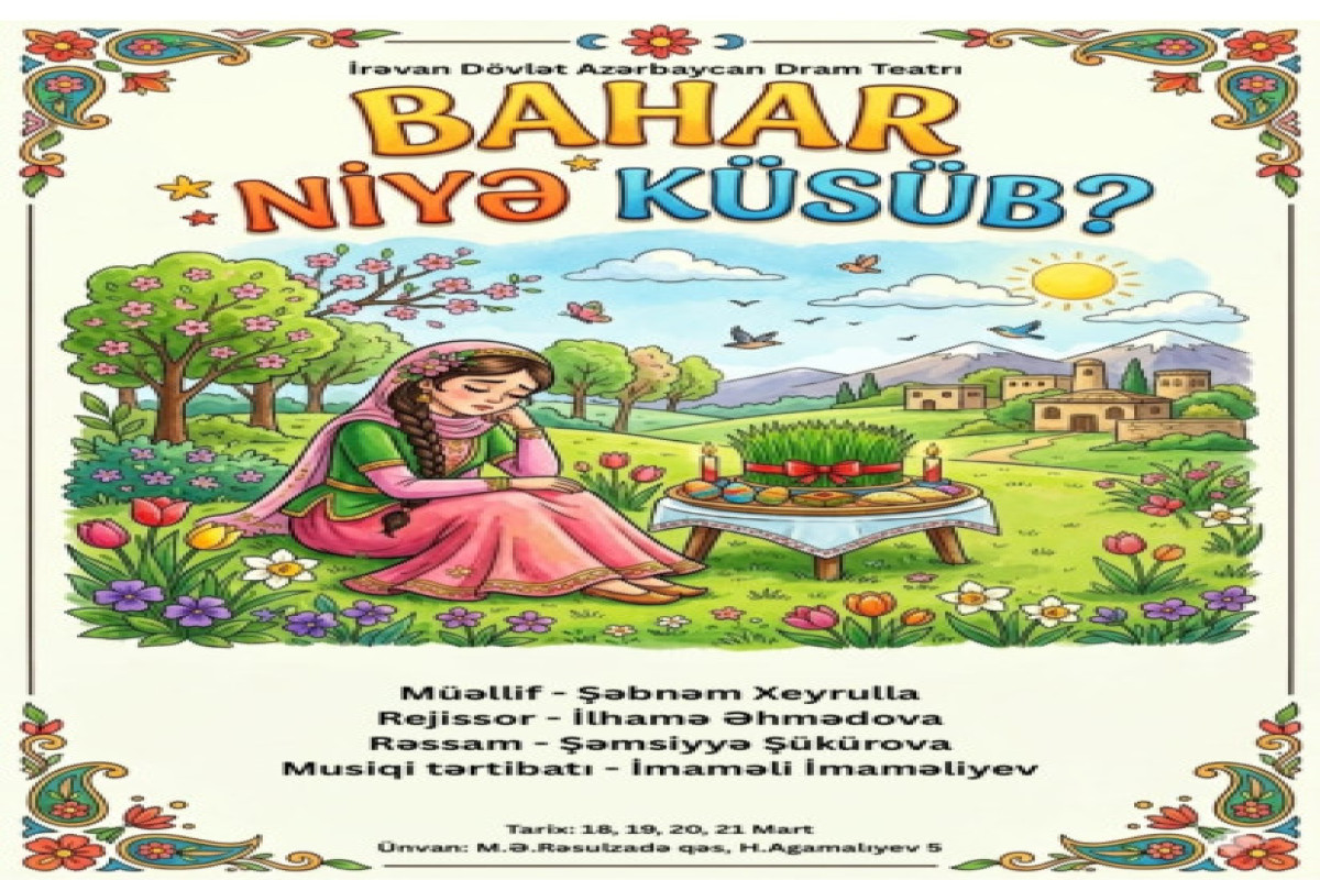 Kulis.az xəbər verir ki, martın 18-dən 21-dək sənət ocağında dramaturq Şəbnəm Xeyrullanın "Bahar niyə küsüb?pyesi əsasında quruluşçu rejissor İlhamə Əhmədova tərəfindən hazırlanmış eyniadlı tamaşa nümayiş etdiriləcək.